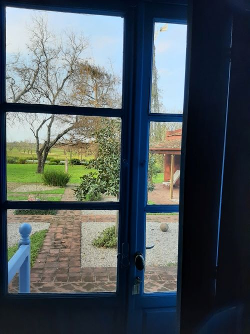 Nos asentamos en una gran sala que otrora fuera un galpón de herramientas y allí Graciela y su hija Maria nos enriquecieron con la historia familiar y de la propia casa. Este espacio nos remonta , sin dudas, a un tiempo no tan lejano donde las paredes descubiertas dejan ver los antiguos ladrillos que conforman las paredes y un reloj a péndulo ha detenido sus agujas como deseando que el momento no avance tan vertiginoso y se estacione al menos en el recuerdo familiar.